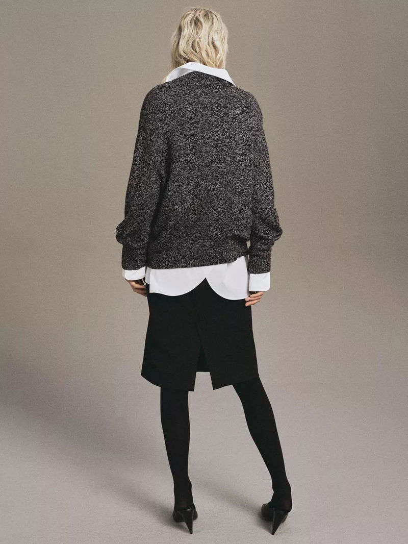 Moliv Heathered V-Neck Jumper, Black