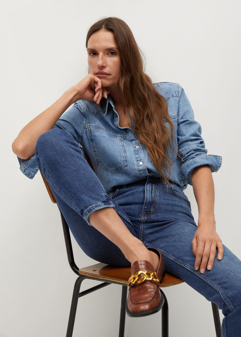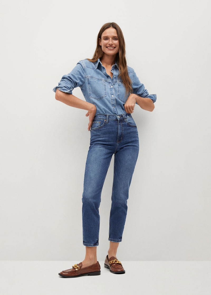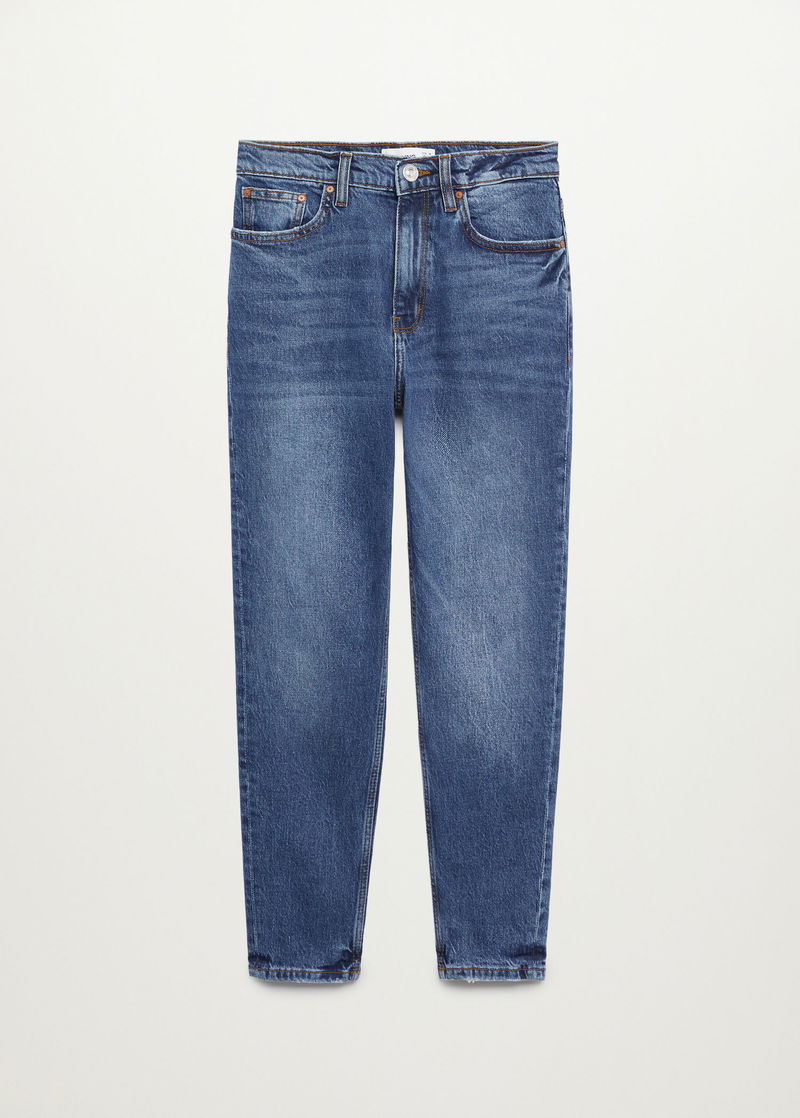 You will move comfortably thanks to the elasticity provided by these classic-style jeans.Mom-fit, Denim style cotton fabric, Straight design, Denim design, High waist, Loops on the waist, Five pockets, Zip and one button fastening.