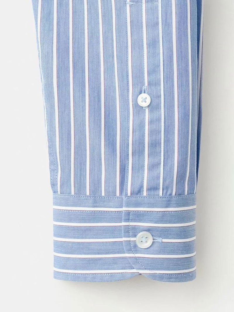 Mongo Player Striped Long Sleeve Shirt, Medium Blue