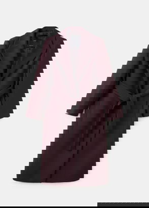 Marled wool-blend fabric. Long design. Straight Design. Lapel-collar V-neck collar. Detachable fur-effect collar. Long sleeve. Front closure with buttons. Inner lining.