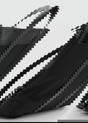 Top strap, Zip fastening, Double strap, Two long adjustable straps, Side pockets, Interior pocket suitable for protecting a laptop, Inner zipped pocket, Adjustable buckles.