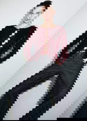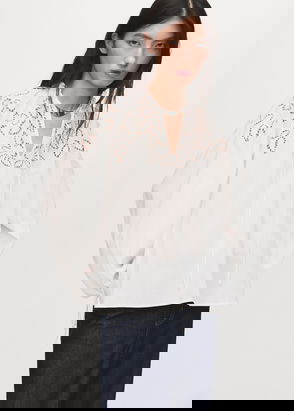 Adding impact to your looks in an abstract pattern, this blouse from Mango is cut with a high neck and a singular balloon sleeve.