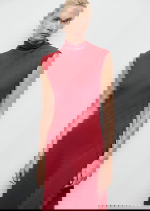 Formed into a loose-fitting silhouette with sharp pleats, this floor-length dress from Mango is made from satin with a round neckline and three quarter length sleeves.