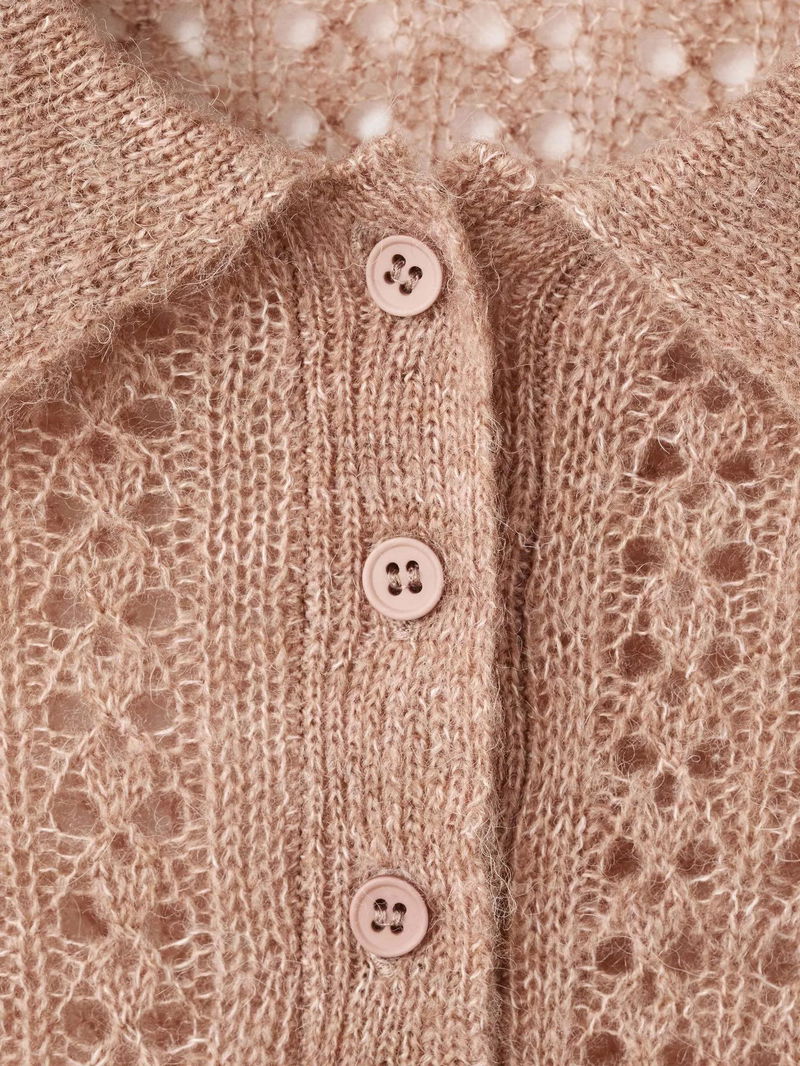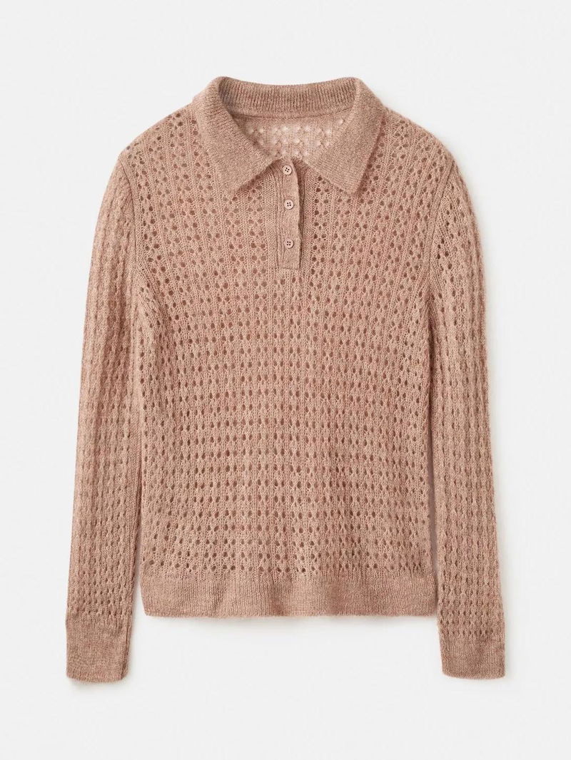 Nuez Open Knit Polo Knit Top, Medium Brown