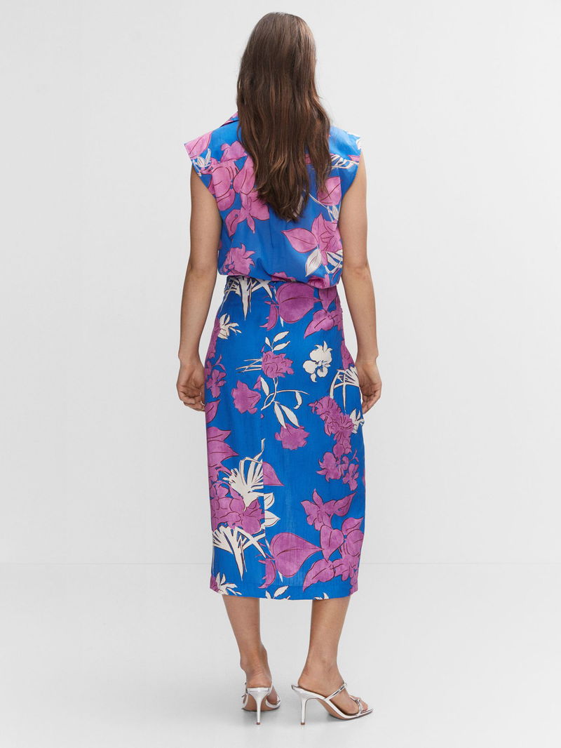 In a pleasingly clean-cut straight silhouette, this calf-grazing skirt from Mango is illustrated with forever covetable blooms. Made from a liquid-like viscose blend and starting at the top of the hips, style with a t-shirt, flats and a crossbody bag.