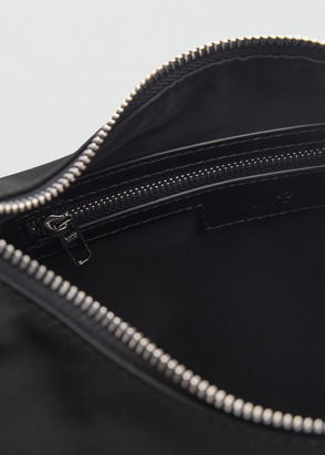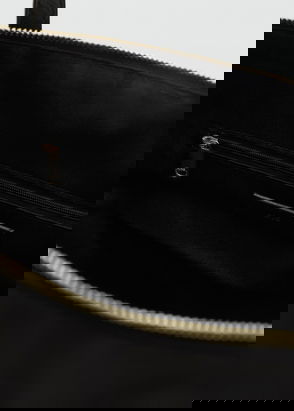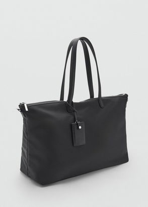 Nylon fabric, Large, Inner pockets, Upper zip fastening, Debossed logo.