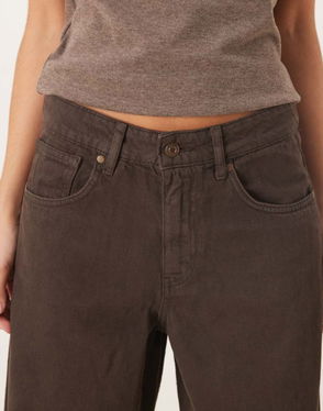 Olimpiap Cotton Mix Textured Straight Jean Co-ord In Chocolate Brown