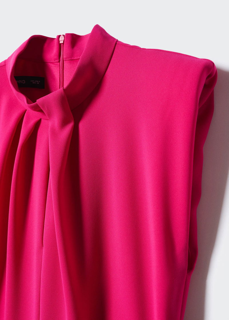 Flowy fabric, Long design, Straight design, Shoulder pad, Sleeveless, Gathered detail, Zip fastening on the back section, Inner lining, Party and events collection.