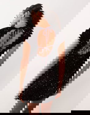Open Back Sequin Velvet Mini Dress, Dark Red