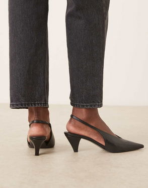 100% goat leather. Slingback design. Square-toe. Open toe. Funnel heel. No fastening. Inner lining. 8 cm heel. Selection Collection.