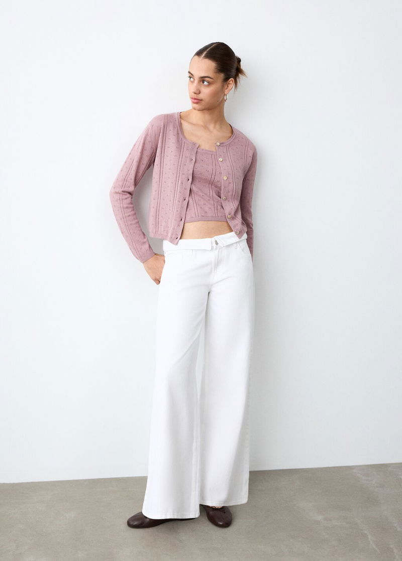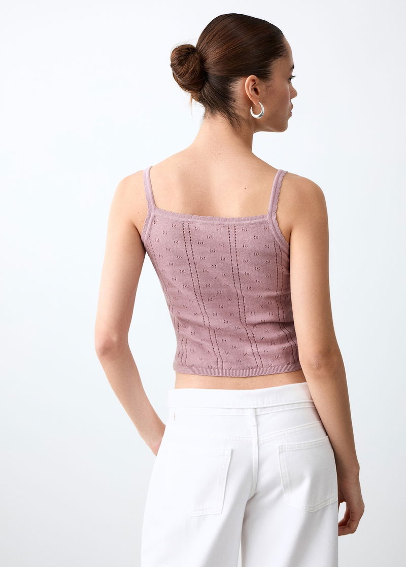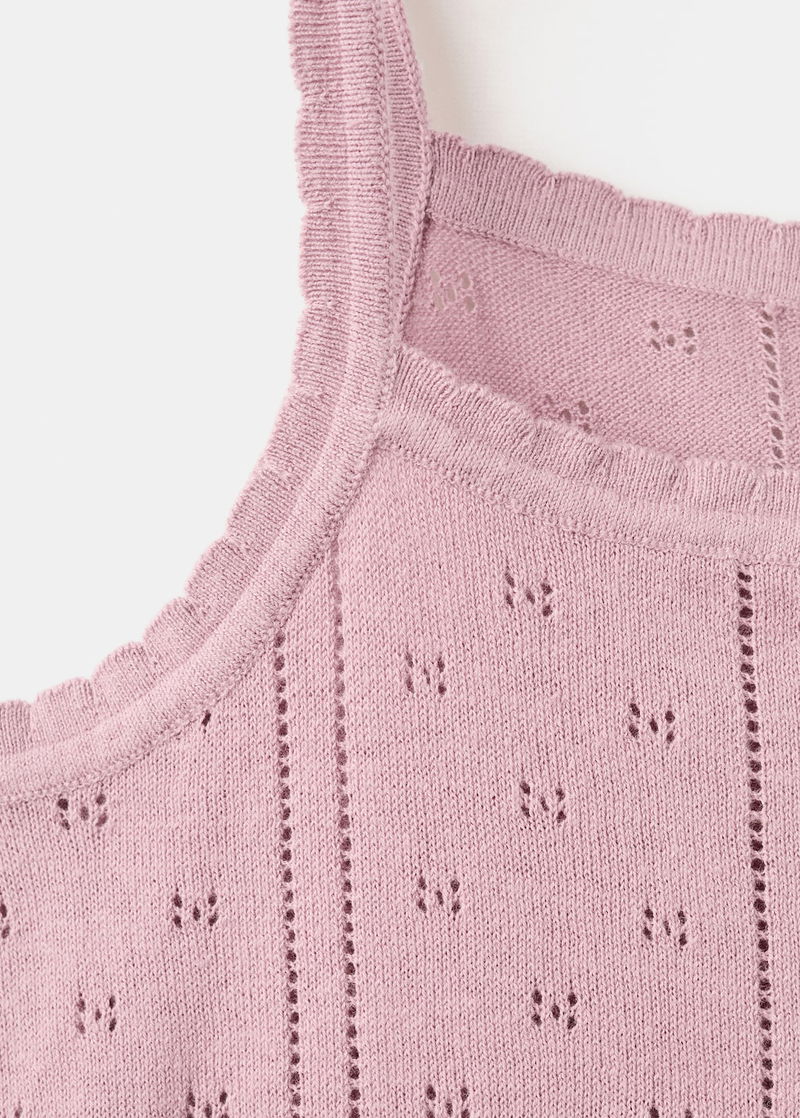 100% cotton fabric. Open-knit fabric. Straight design. Straight collar. Thin straps.