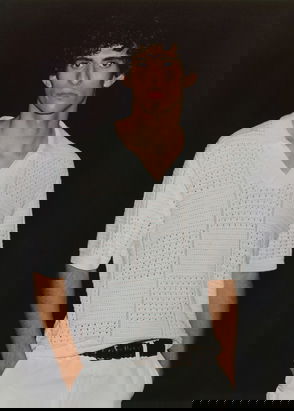 Straight silhouette. Cotton-blend fabric. Open-knit fabric. Striped design. Polo shirt with buttonless collar. Short sleeve. Ribbed collar, sleeves and hem.