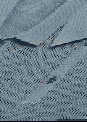 100% cotton fabric. Straight silhouette. Fine-knit fabric with openwork details. Polo-neck with button closure. Short sleeve. Ribbed collar, sleeves and hem.