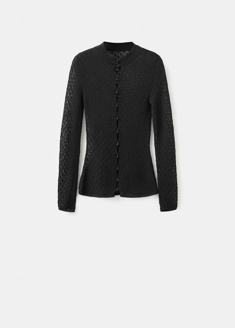 Openwork Knitted Sweater With Bead Fastening