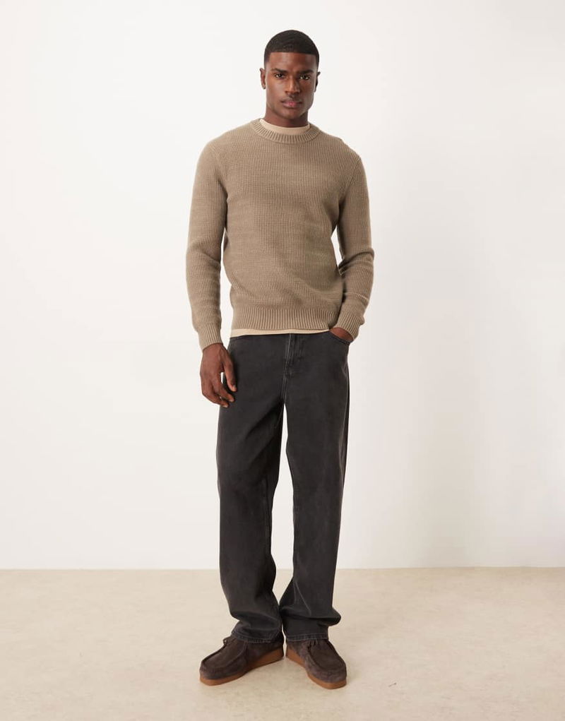 Oversized Knitted Jumper In Brown With Chunky Neckline
