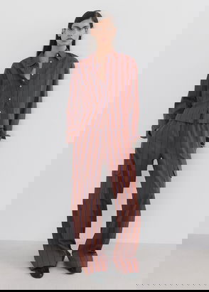 Stripe design Spread collar Button placket Long sleeves Oversized fit.