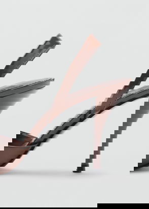 Patent leather effect. Slingback design. Pointed. Stiletto heel. 10 cm heel. Buckle closure at the ankle.