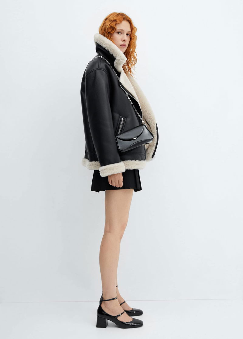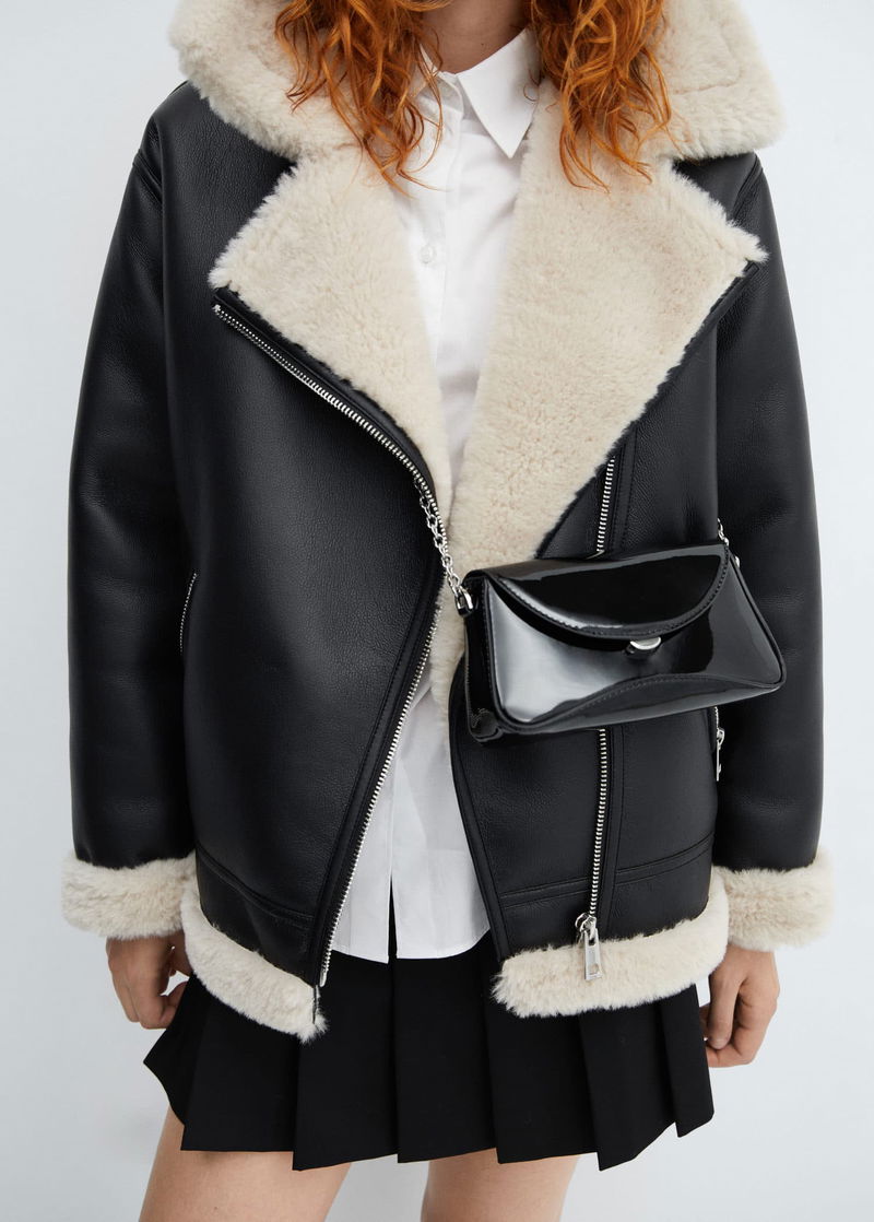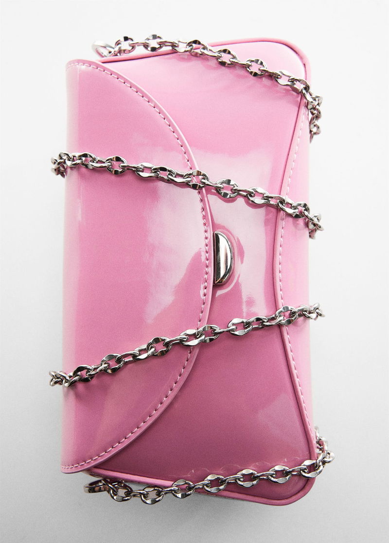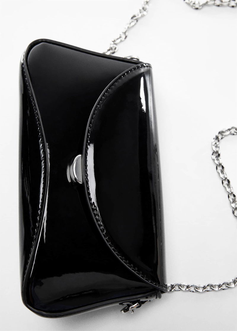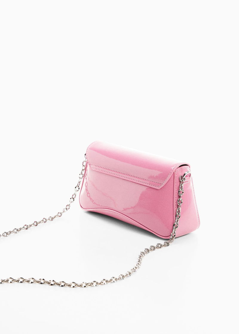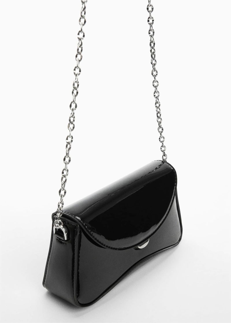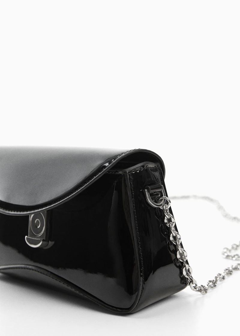 Small, Patent leather effect, Short chain strap, Flap closure, One press stud fastening, Inner lining.