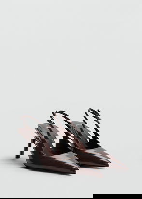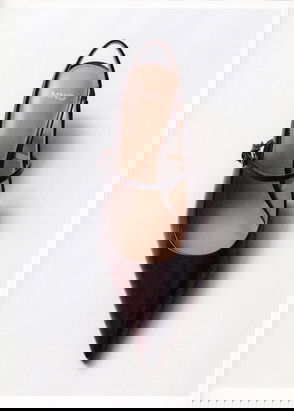 Patent leather effect, Rounded toe, Block heel, Ankle bracelet, Strap closure with buckle.