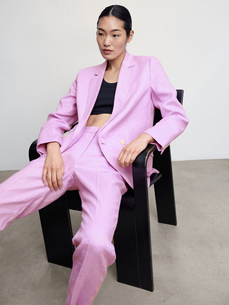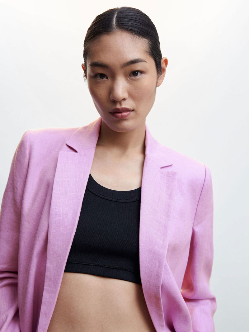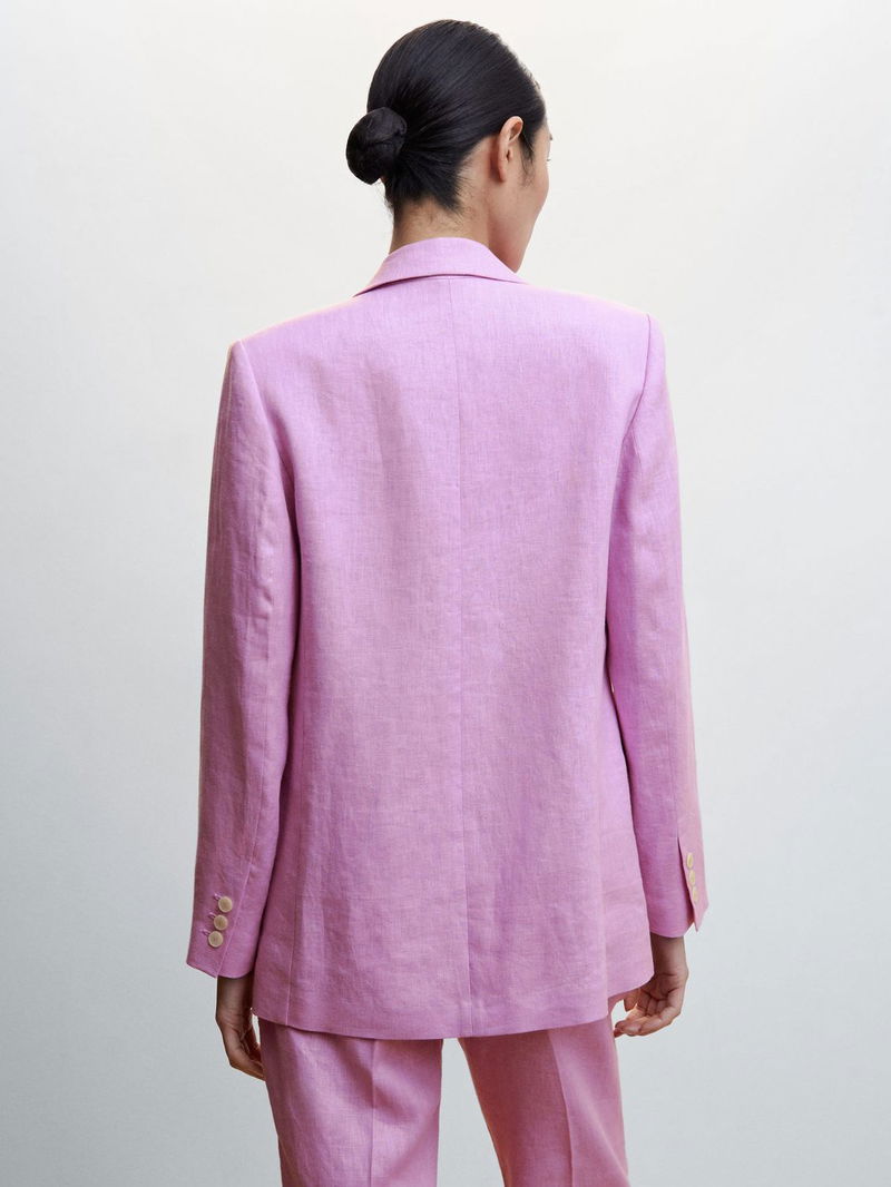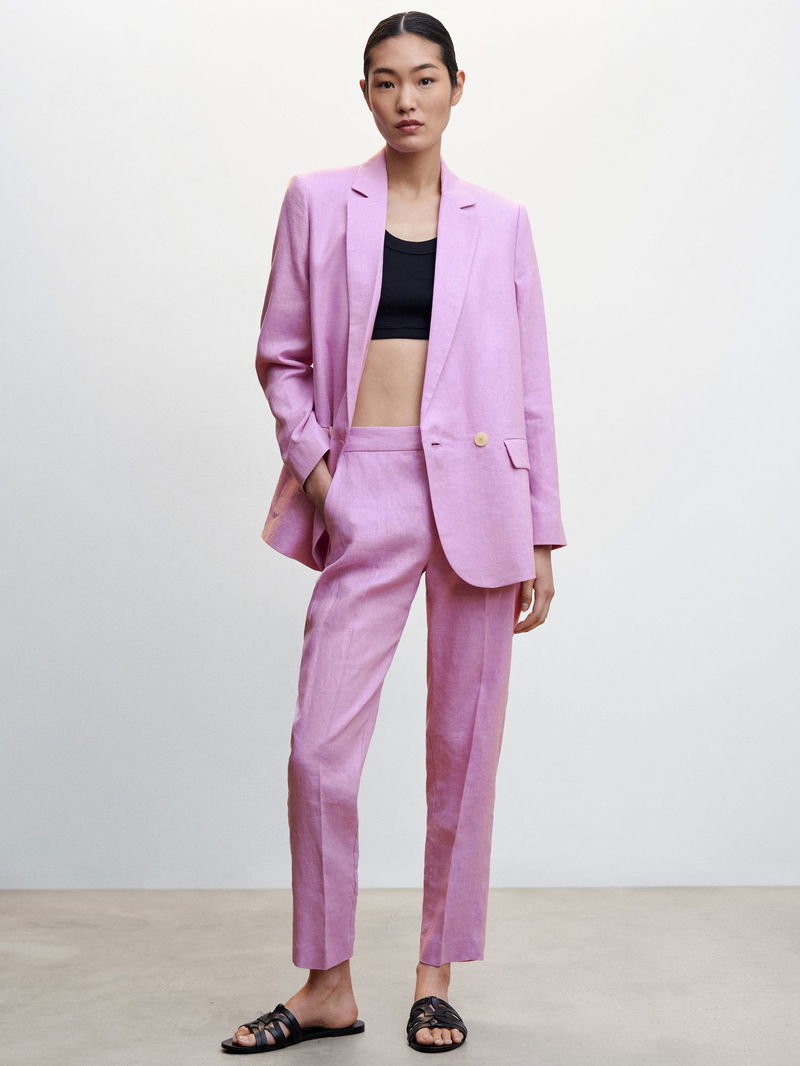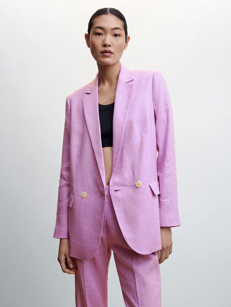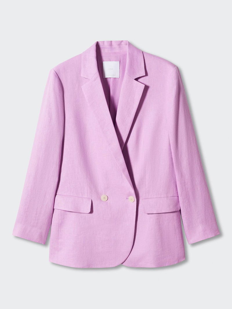 An elegant layering piece for smart events, this blazer by Mango sits at the hips for practical coverage. Collared for a confident feel, it makes for lightweight wear thanks to its blended linen fabrication.