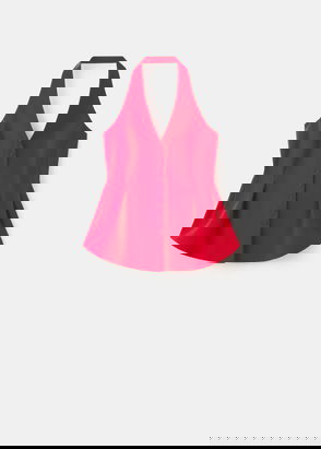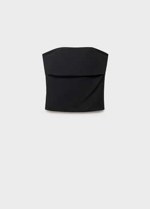 Peplum design. Strapless. Sleeveless. Slip-on.