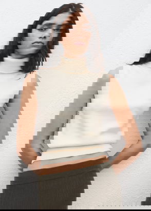 With a timeless turtleneck and a sleeveless design, it is an easy daytime option.