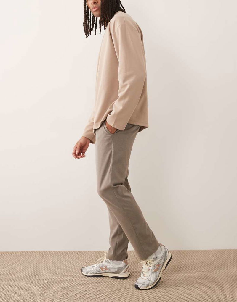 Pleat Front Adjustable Waist Trousers In Stone