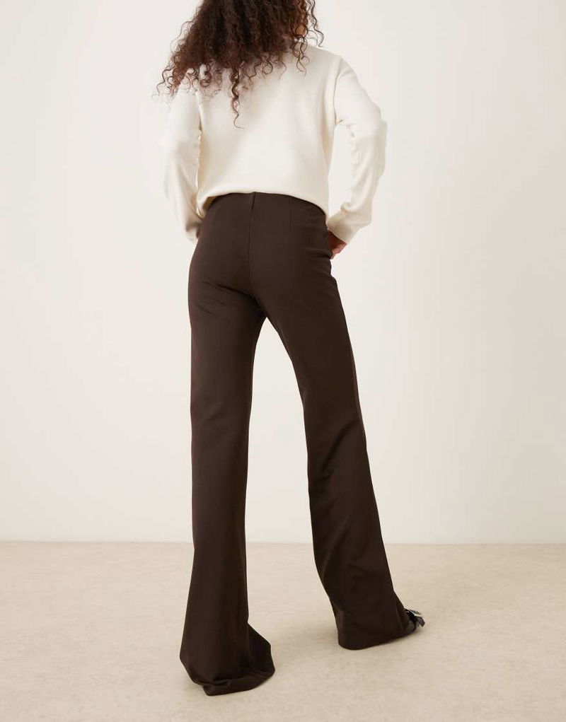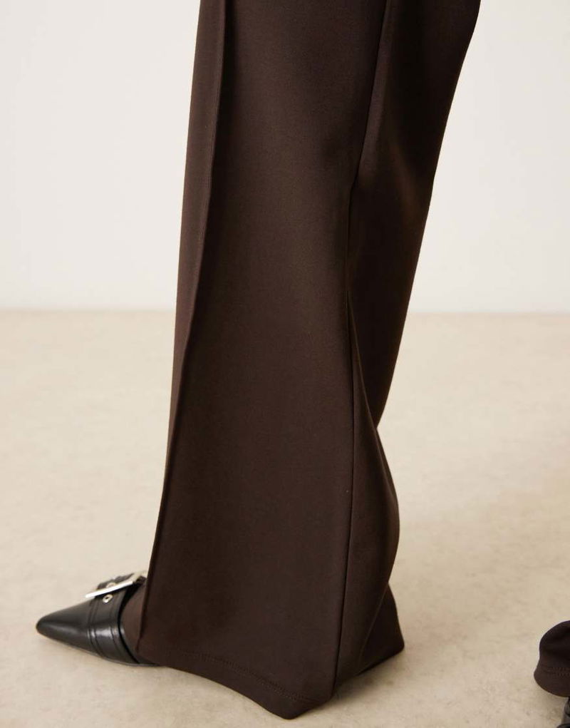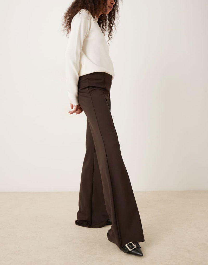 Pleat Front Flared Trouser In Brown