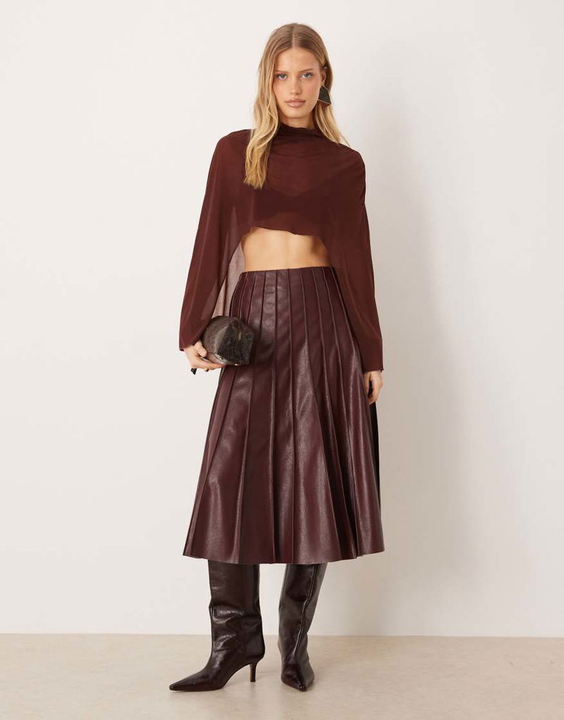 Pleated Faux Leather Maxi Skirt In Burgundy