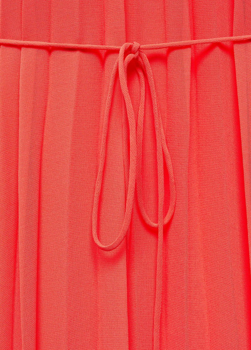 Flowy fabric, Evasé design, Pleated design, Halter neck, Sleeveless, Button fastening at back, Inner lining, Drawstring on the waist.