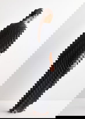 Flowy fabric, Long design, Evasé design, Pleated design, Graduated print, V-neck, Sleeveless, Wide straps, Side slits, Lurex details, Inner lining, Party and events collection, Prom collection.