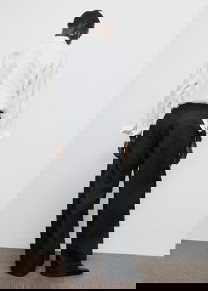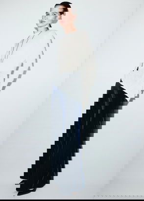 Recycled polyester blend fabric, Slit detail, Pleated design, Straight design, Long design, High waist, Hem with side slits, Co-ord.