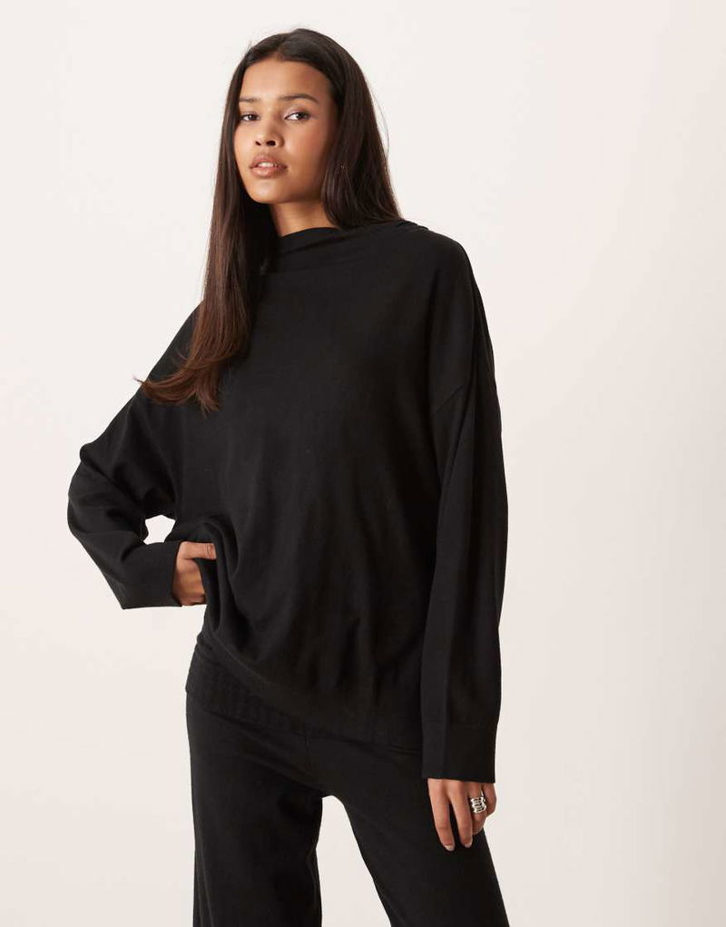 Plegamm Knitted High Neck Sweater Co-ord In Black