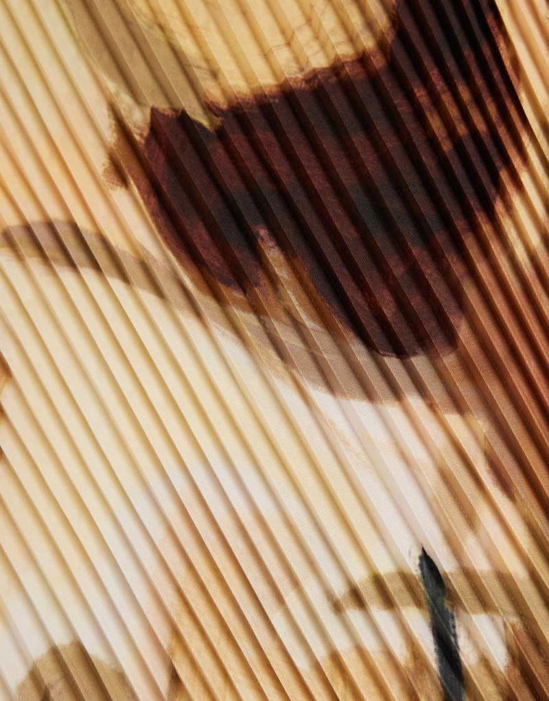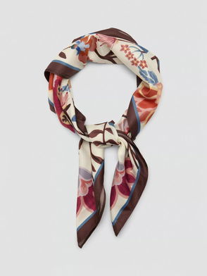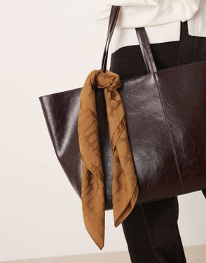 Plisse Floral Print Bag Scarf In Brown