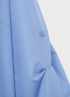 Cotton poplin, Striped print, Long design, Oversize design, Shirt-style collar, Long buttoned sleeve, Patch pocket on the front, Button fastening on the front section.