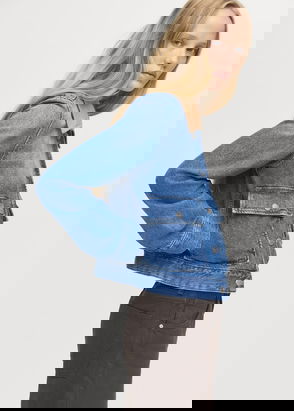 You will move comfortably with these classic-style jeans made of light denim. Denim style cotton fabric, Classic collar, Long sleeve with buttoned cuffs, Two patch pockets on the chest, Two side pockets, Button fastening on the front section.