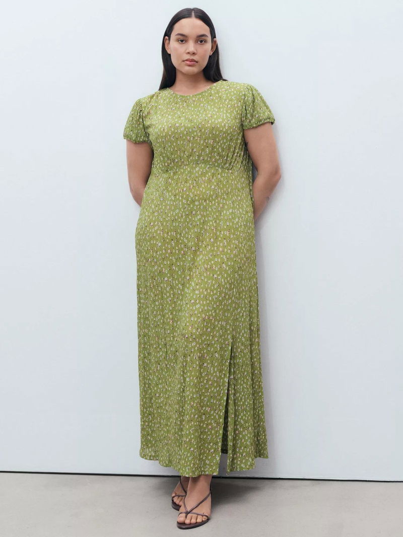 Pomelo Floral Plisse Dress, Green