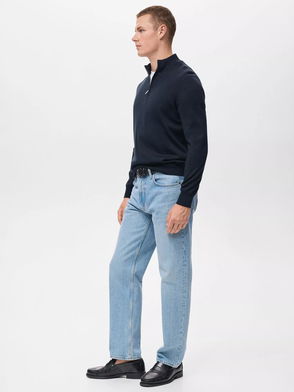 Portell High Zip Neck Jumper, Navy