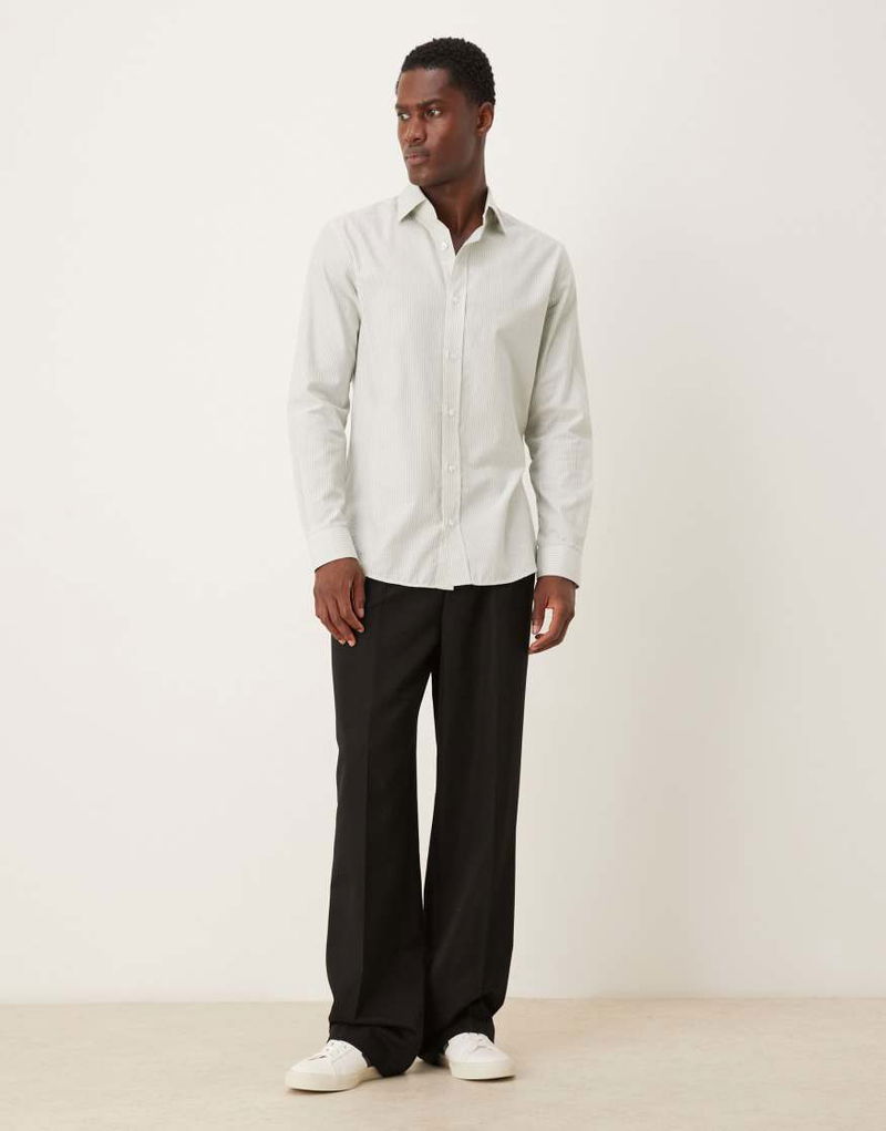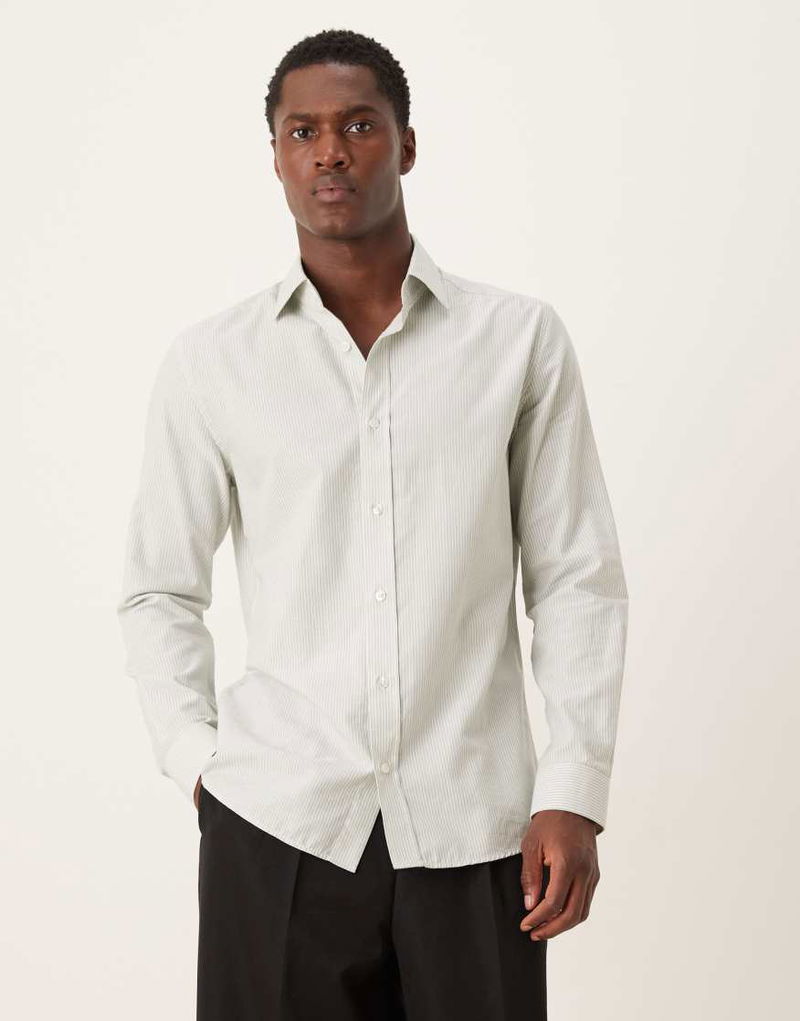 Premium 100% Cotton Striped Shirt In Green