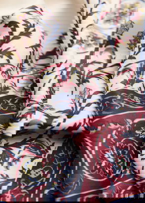 Flowy fabric, Printed design, Multicolour design, Square design.