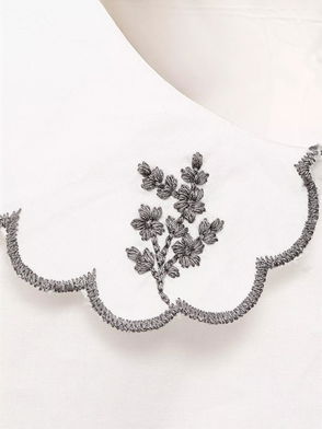 Printed design, Evasé design, Light fabric, Long sleeve, Embroidered details, One button fastening, Inner lining.