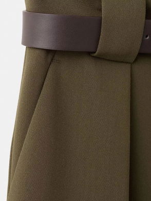 Straight design. Crop design. Flowers print. Medium waist. Elastic waistband. Detachable belt. Belt loops. Two side pockets. Slip-on. Inner lining.
