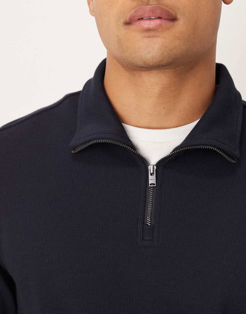 Quarter Zip Knitted Jumper In Navy