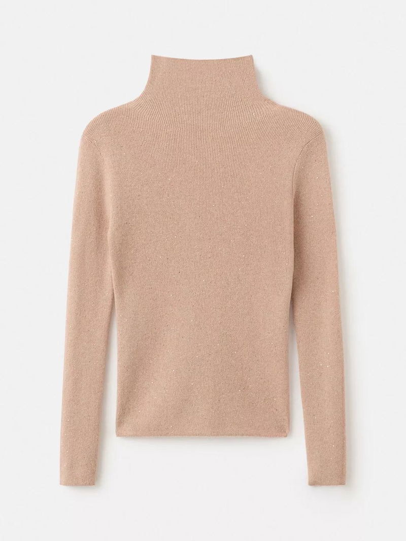 Recatada Sparkle High Neck Jumper, Medium Brown