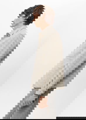 Casual line, Regular fit, Cotton and linen mix, Sustainable fibre, Bowling collar, Twin buttoned flap pockets at front, Button up, Long buttoned sleeve.