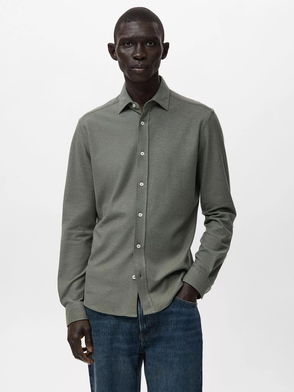 Cotton fabric. Regular Silhouette. Textured. Regular fit. Striped print. Shirt Collar. Long sleeves with puffed cuffs. Front closure with buttons.