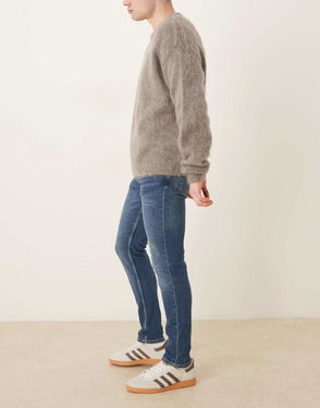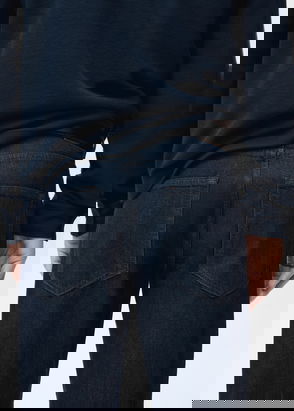 Relaxed fit, Denim fabric, Medium waist, Belt loops, Zip and one button fastening, Two front pockets, Coin pocket, Two patch pockets on the back.