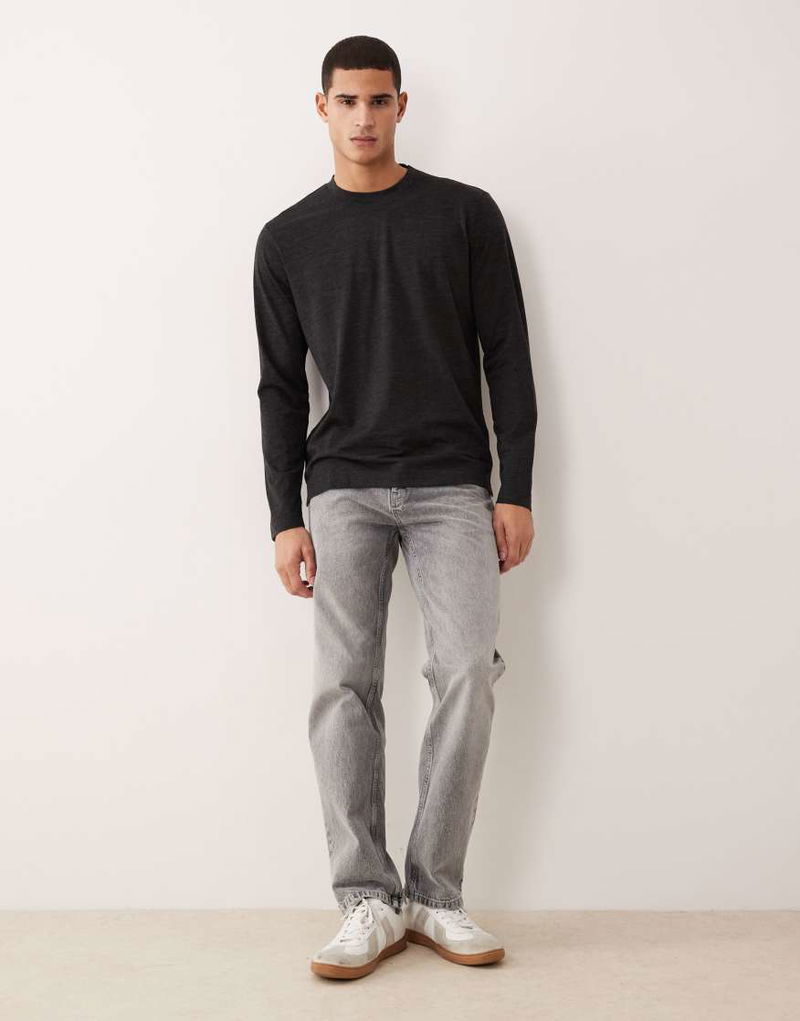 Relaxed Fit Marled Long Sleeve T-shirt In Charcoal