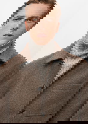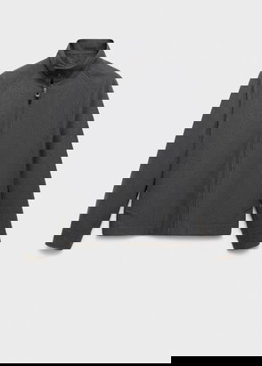 Straight silhouette. Suede faux-leather. Fleece lining. Reversible design. Funnel neck. Two inside patch pockets. Two side pockets. Zip closure. Heavy structure.