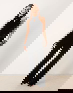 Crafted from ribbed fabric, this fitted design features an elegant halter neck and wide straps. Sleeveless and without a fastening, it offers comfort and style in one piece. Available in Plus Size